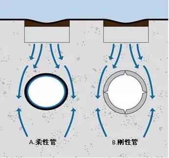 塑料管屬于柔性管,在受外壓負(fù)荷時(shí),柔性管和剛性管的承受負(fù)載的機(jī)理是全部不同的。柔性管在受壓破壞之前,可以有較大的變形,而剛性管在受外壓破壞之前不可能有較大變形。當(dāng)剛性管受外壓時(shí),負(fù)載全部經(jīng)過管材壁傳遞到底部的管床上,在管材壁內(nèi)產(chǎn)生彎矩,隨著管材直徑加大,管壁的彎矩和應(yīng)力急劇加大,所以大直徑的混凝土排水管常常需加鋼筋,而柔性管在受壓破壞前先變形----橫向外擴(kuò),管材周圍的回填土壤可以起到阻止柔性管變形和外擴(kuò)的作用,外壓負(fù)載就被傳遞和分?jǐn)偟街車幕靥钔林腥チ?。所以,在同樣外壓?fù)載下柔性管管壁內(nèi)的應(yīng)力較小,它和周圍的回填土共同承受負(fù)載,管土共同作用。因此,塑料埋地排水管不需和剛性混凝土管一樣的強(qiáng)度和剛度,在合理的剛度下,是全部可以達(dá)到使用要求的,這一點(diǎn)已被歐洲發(fā)達(dá)的應(yīng)用實(shí)踐所證明。